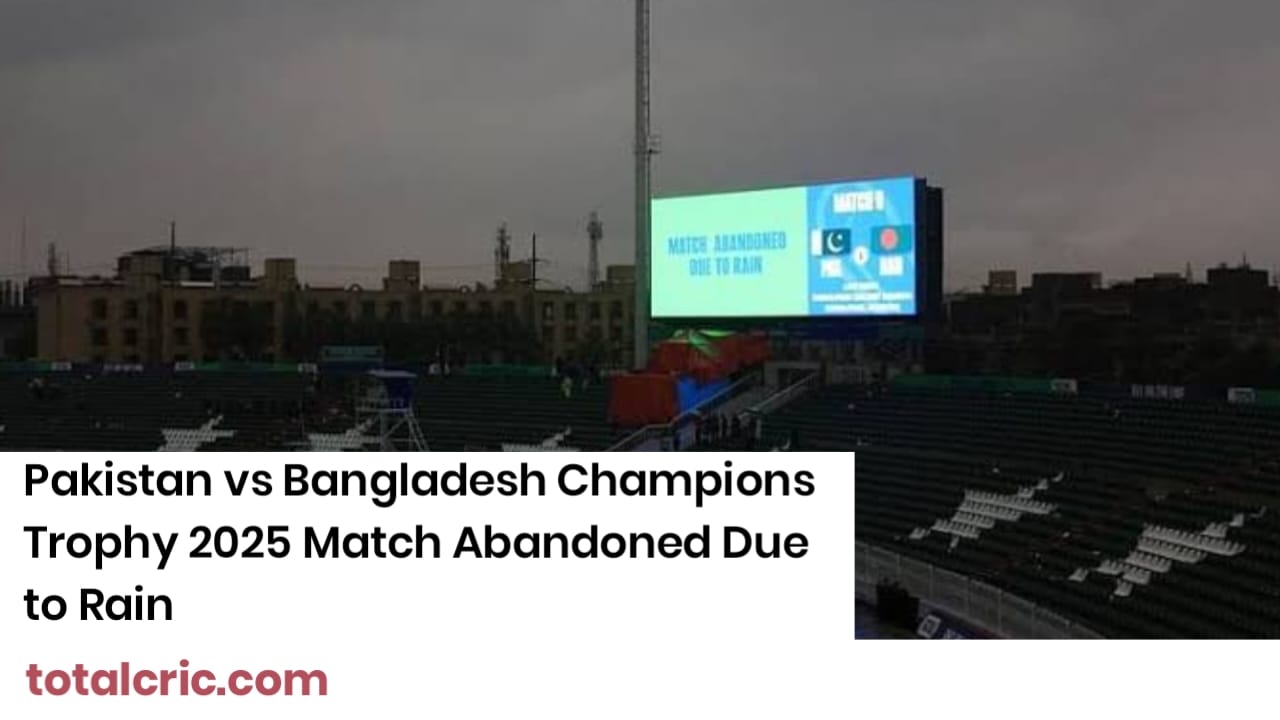 The Champions Trophy 2025 clash between Pakistan and Bangladesh in Rawalpindi was abandoned without a ball being bowled due to continuous rain. This marks the second consecutive washout at this venue, following the Australia vs South Africa game earlier in the tournament.