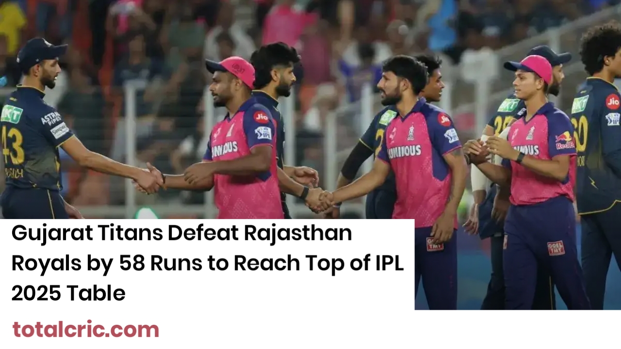 Gujarat Titans Defeat Rajasthan Royals by 58 Runs to Reach Top of IPL 2025 Table